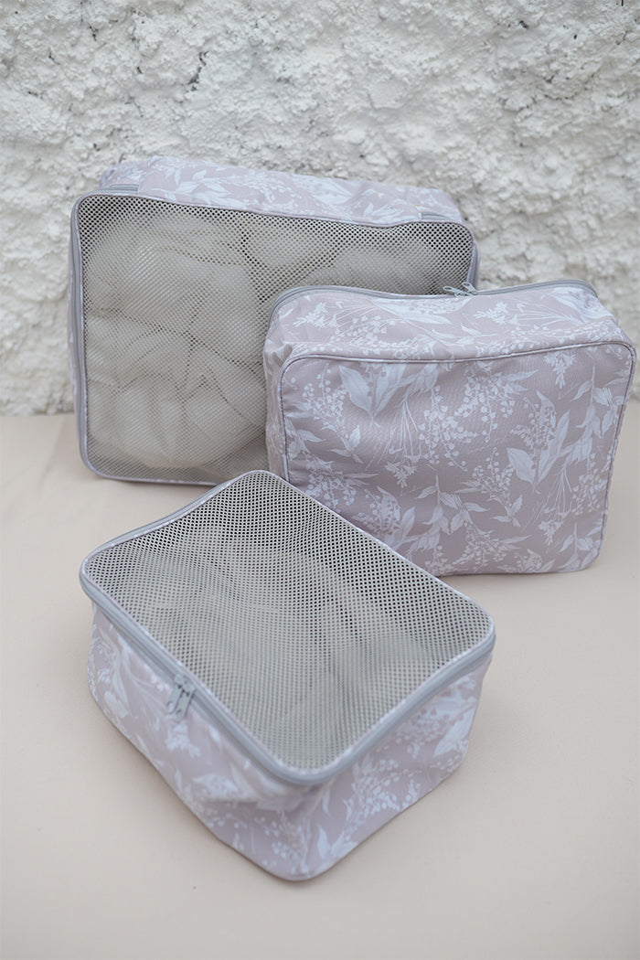 Available in two stunning patterns, the Aruna Travel Pouch set is perfect for any stylish traveler. Each set contains a Small (30 x 21 x 13 cm), Medium (34 x 28 x 13 cm), and Large (43 x 34 x 13 cm) pouch, offering versatile storage options for all your essentials.