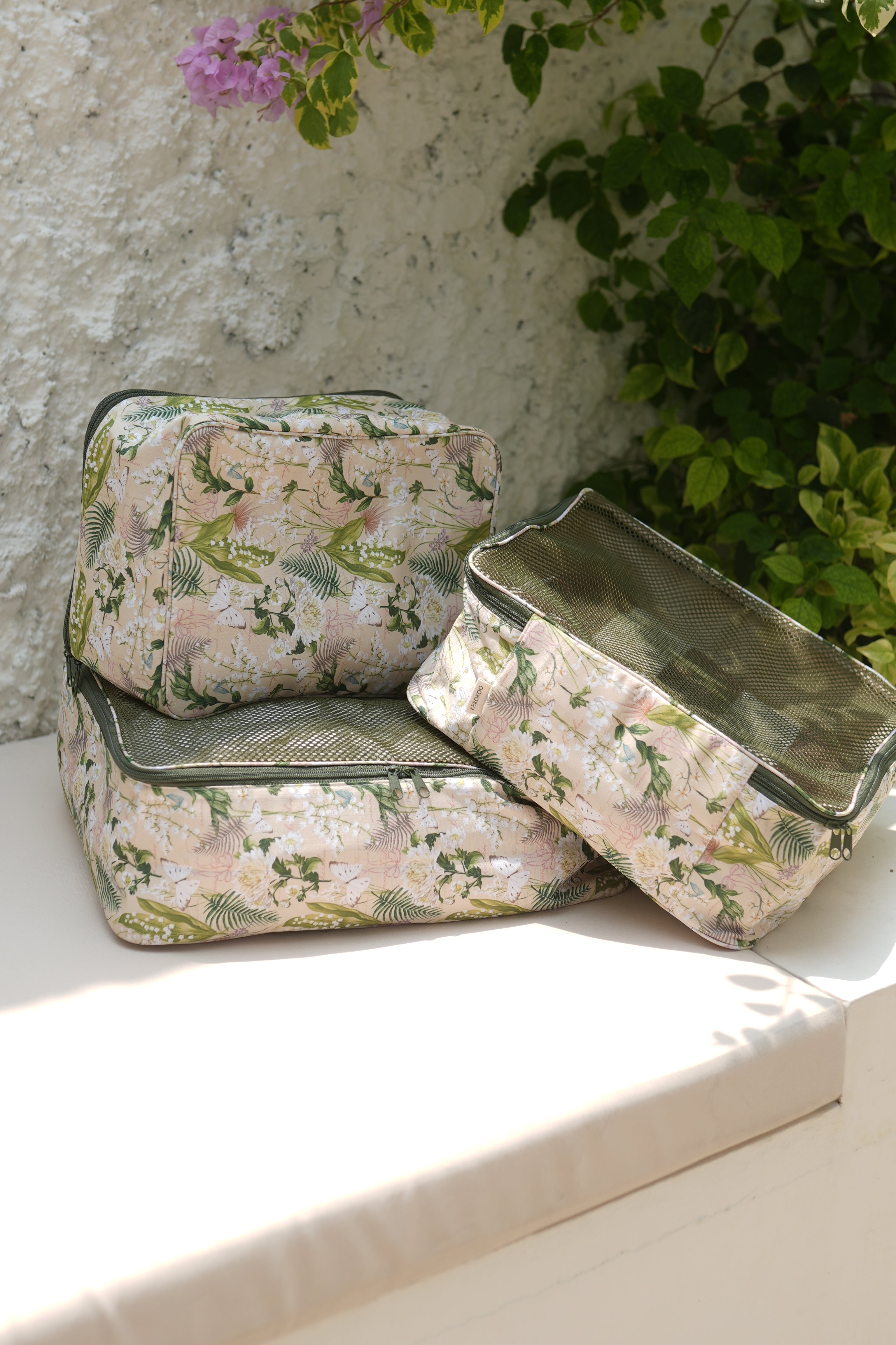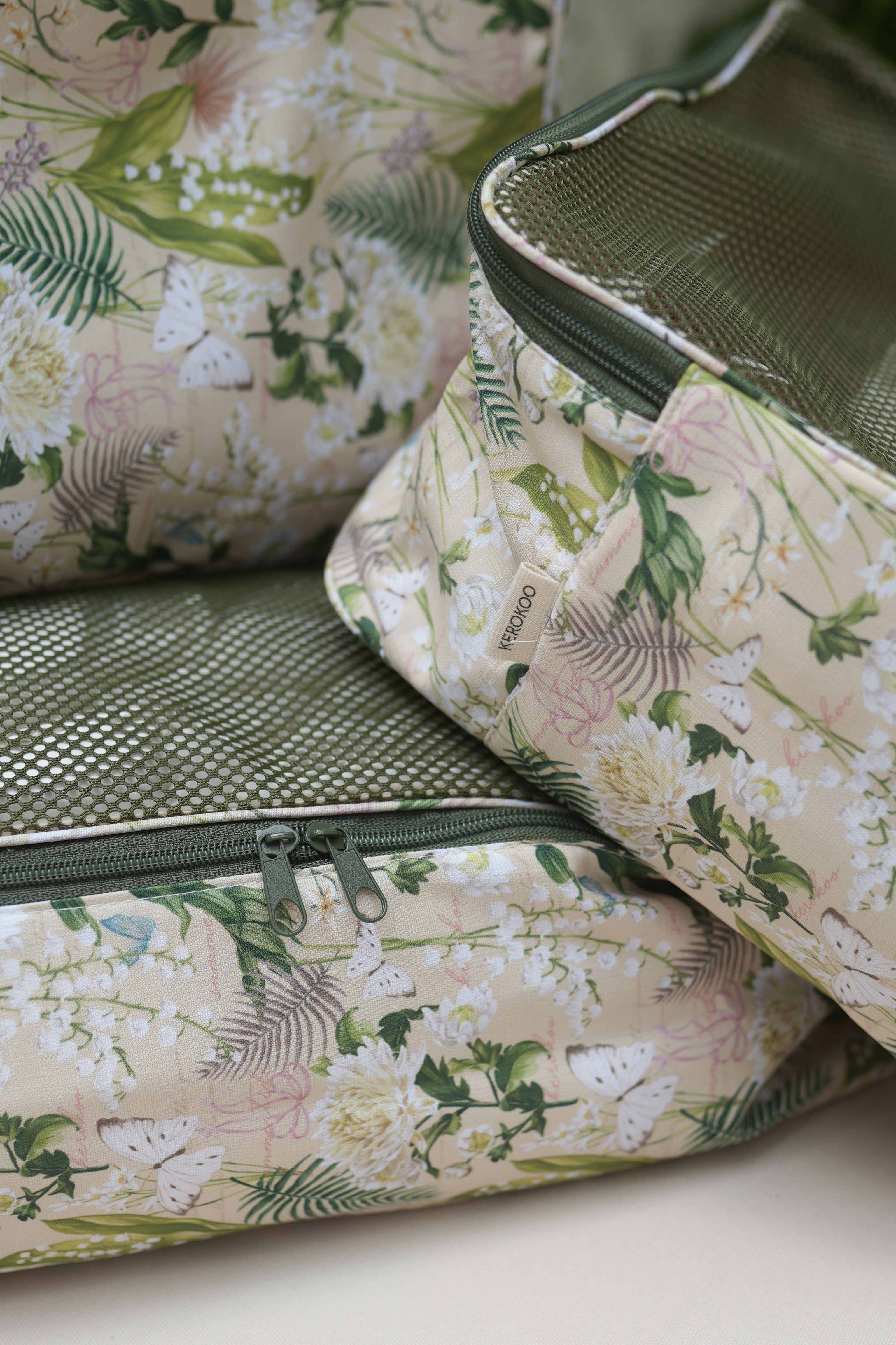 Introducing the KEROKOO ARUNA Travel Pouch, a refined evolution of our popular ARA Trio Pouch. Designed to provide a more structured look, the Aruna set includes three pouches, each in a different size to accommodate various packing needs. With random prints ensuring that every piece is uniquely its own, you can enjoy both functionality and individuality in your travel accessories.