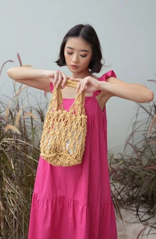 Carry this braid bag to anywhere you go Shaped like a basket, this bag has canvas pouch for your keepsakes