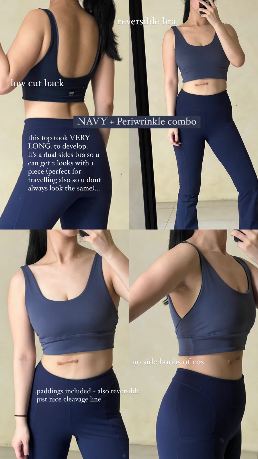 Get 2 sports bra with 1 price. Simply reverse this BROOKLYN Sports Bra inside out, you can wear different color each time to your sweat session