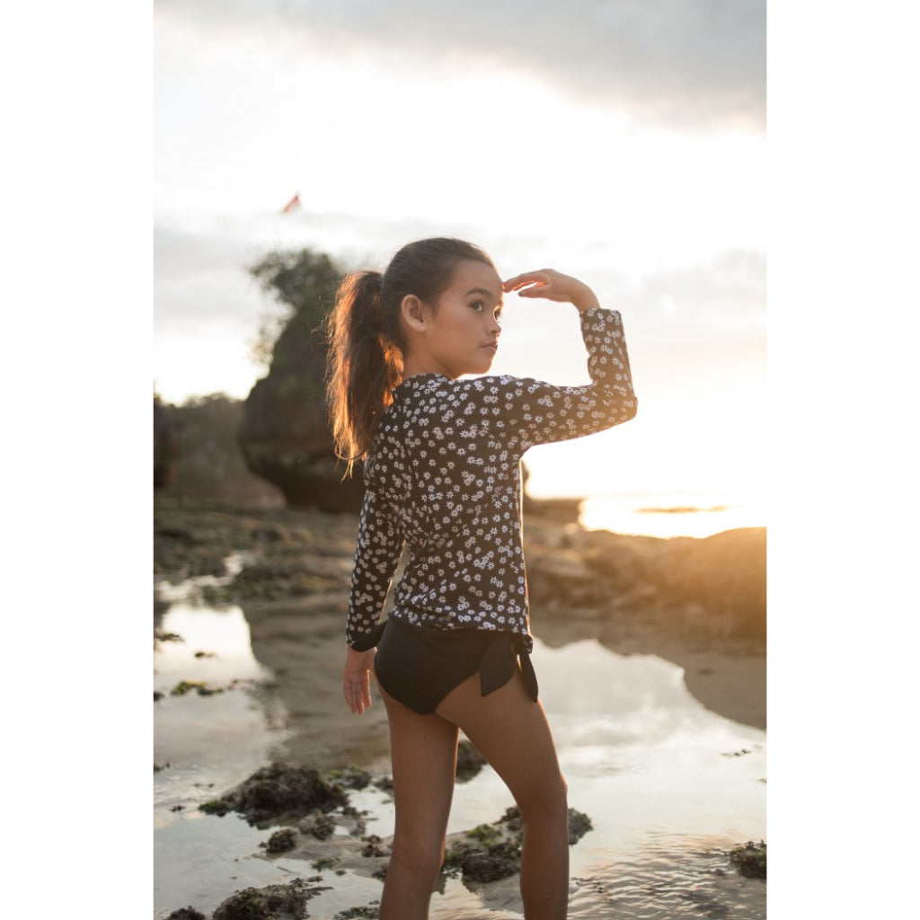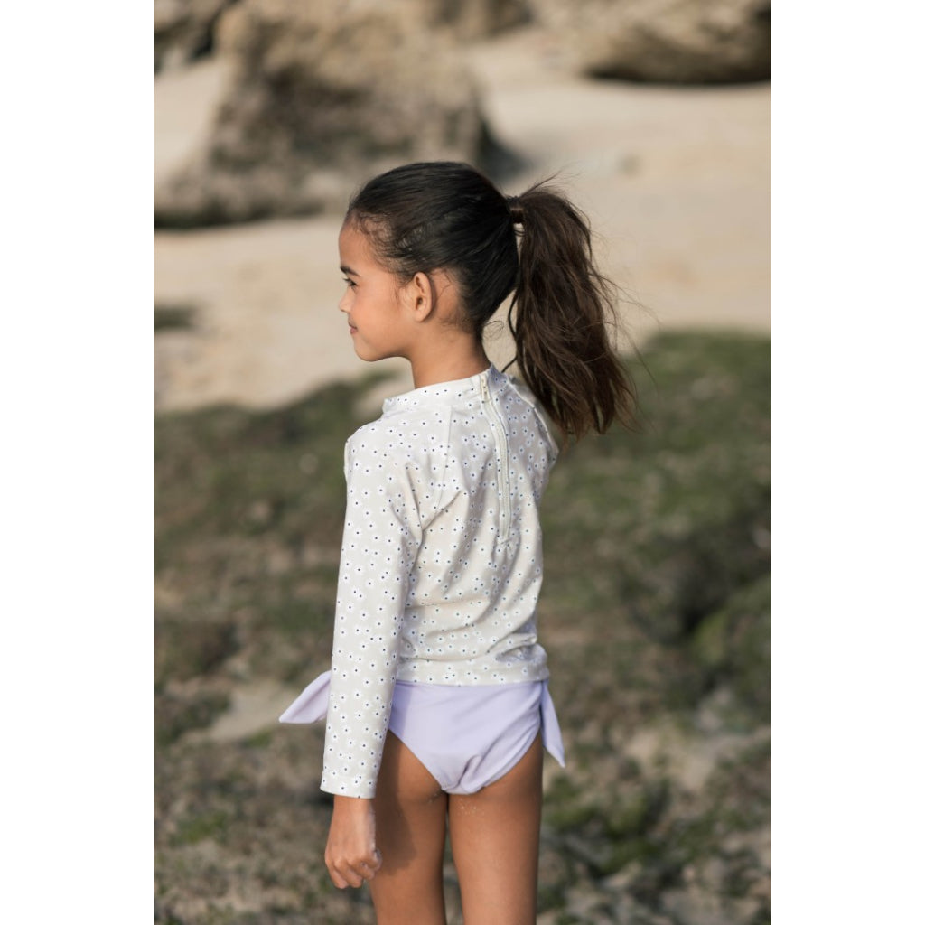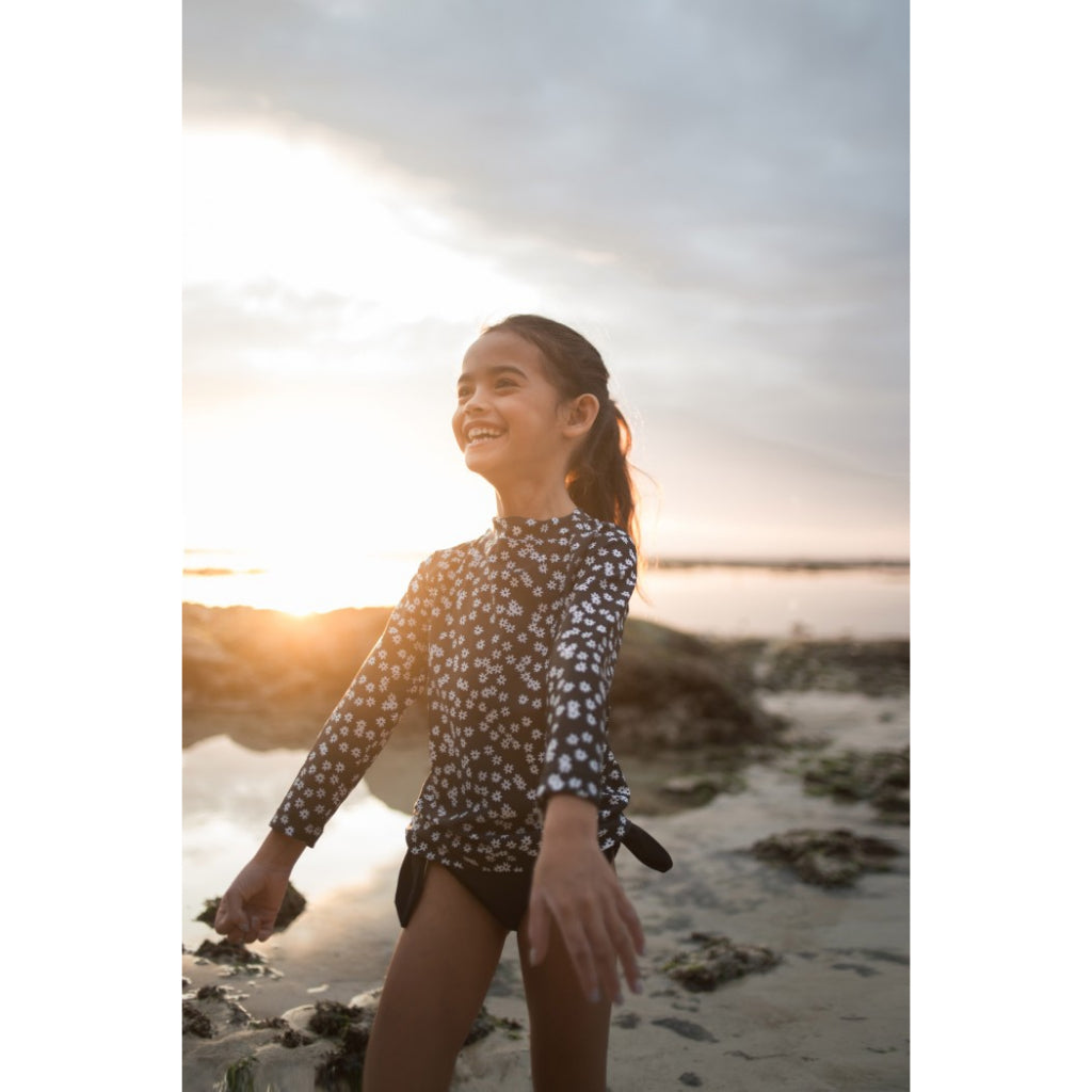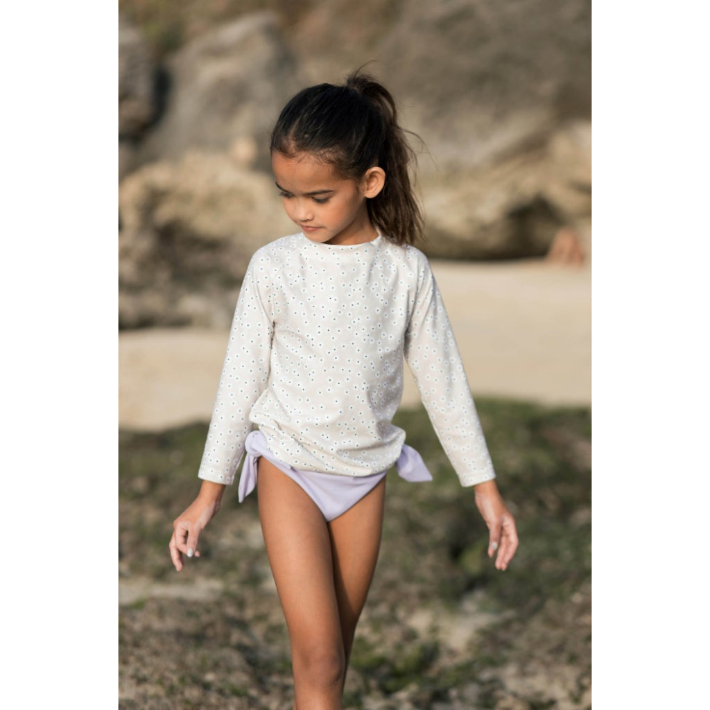 Keep your loved ones safe under the sun with our DANICA rash guard set, featuring a full-length arm rash top and bikini-style bottom adorned with exclusive patterns. Perfect for splashing around, this set is available for boys and comes in three charming patterns, including "Daisy" by Dinda Puspitasari and a watercolor design from our collaboration with Tiffany & Arthur.