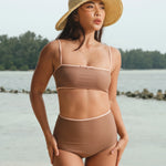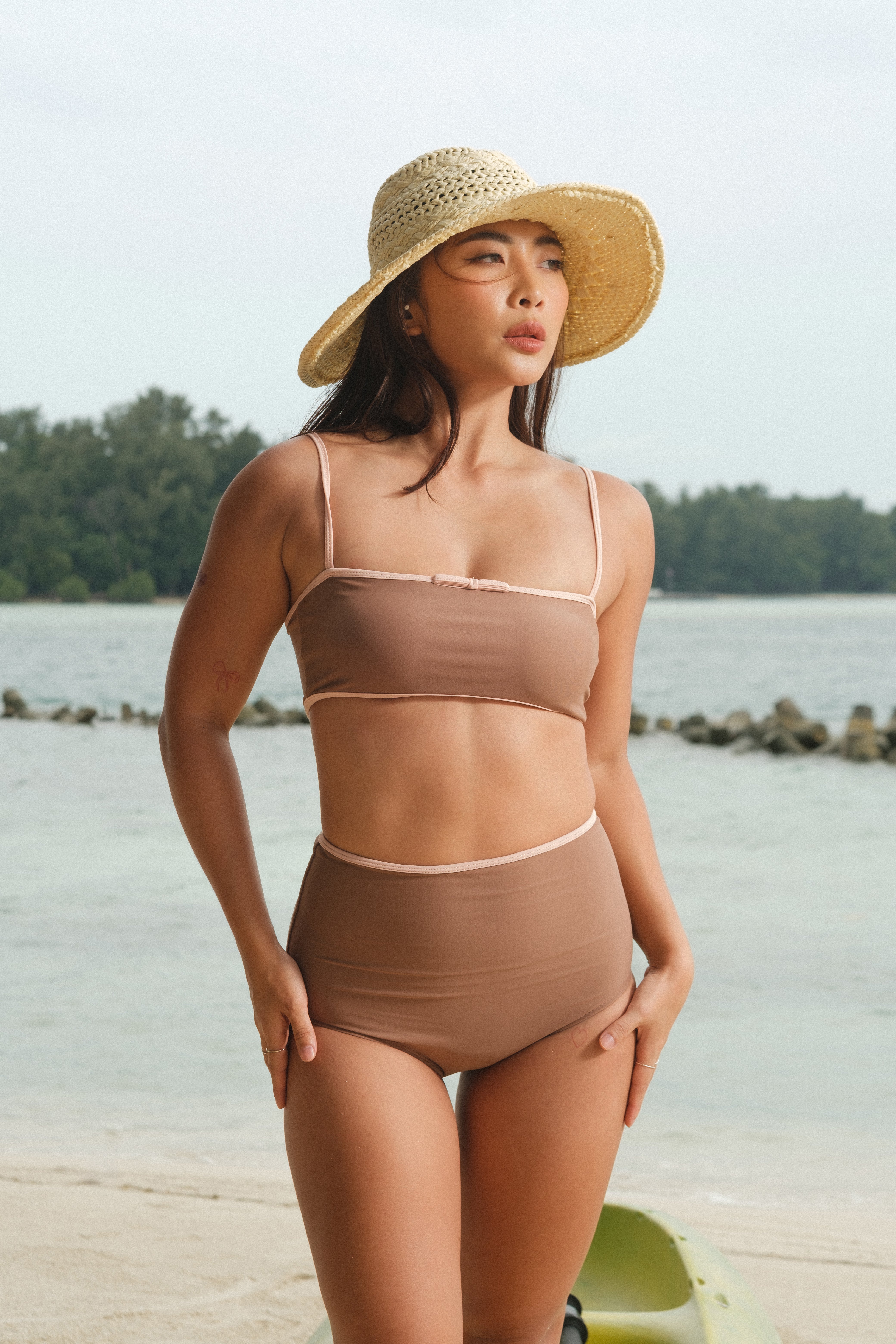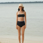 As swimsuits & sportswear are made with stretchy fabrics that are designed to hug your body nicely, we cannot measure our swimsuits 'flat-on-floor' style.