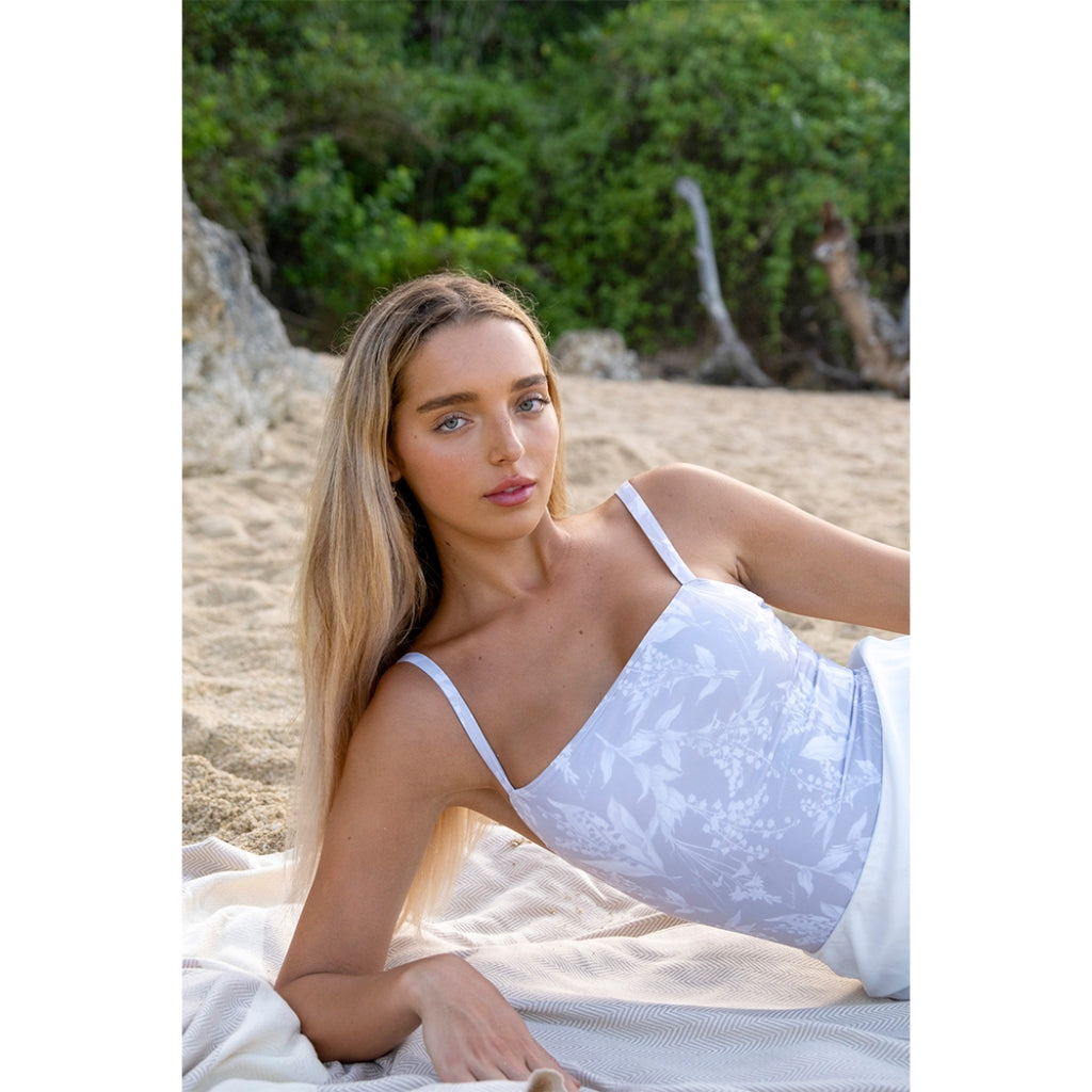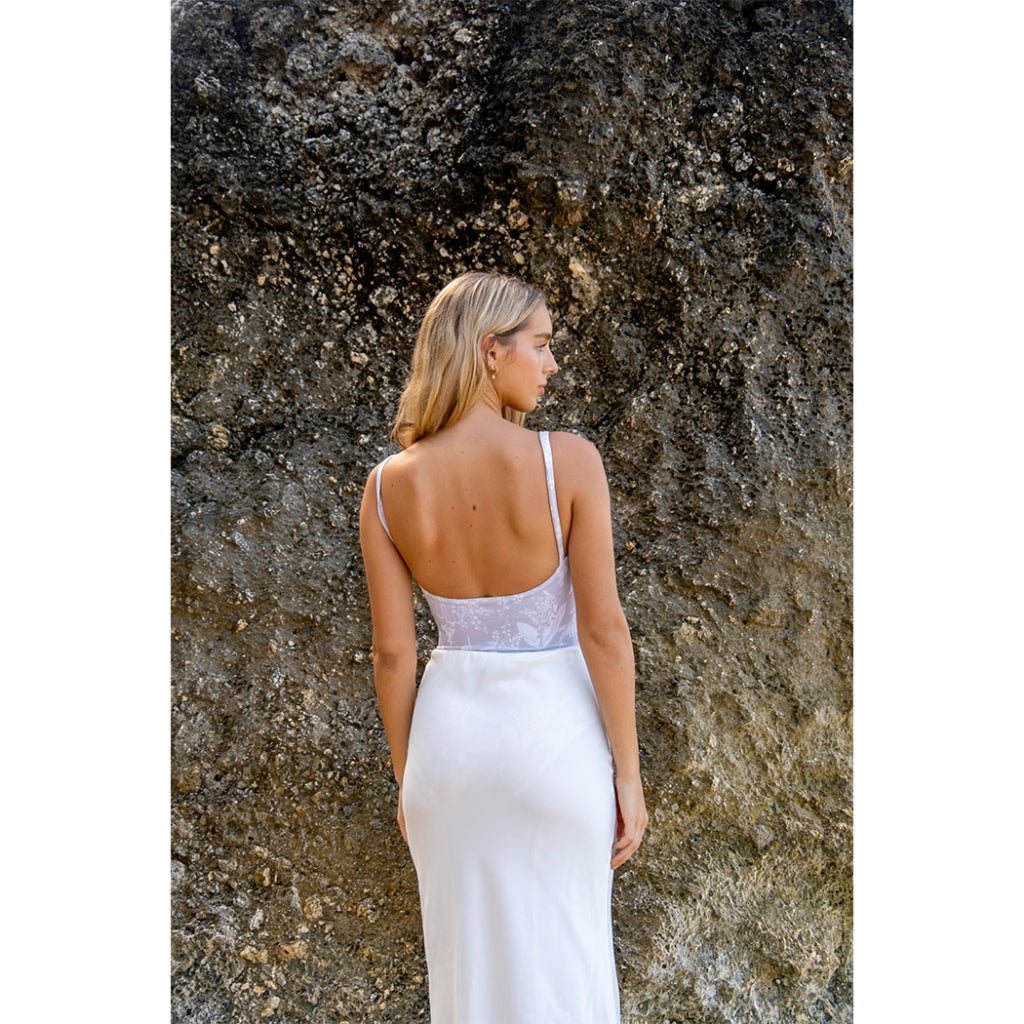 JAYDEN's older sister features the classic square neckline with low back detail.